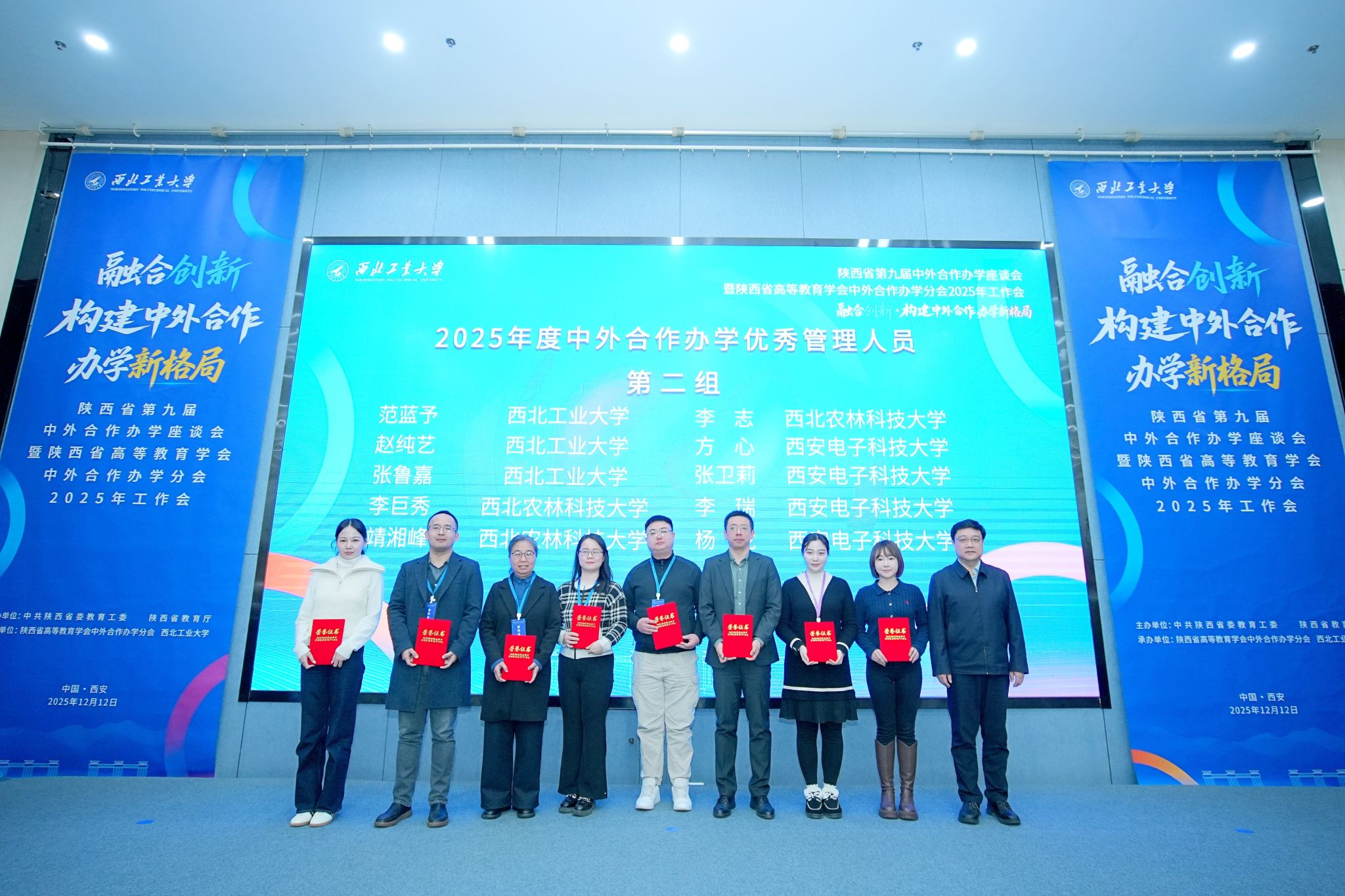 2025年12月12日,陕西省第九届中外合作办学座谈会暨陕西省高等教育学会中外合作办学分会2025年工作会在新葡的京集团8814长安校区召开,教育部国际合作与交流司副司长陈大立、陕西省委教育工委副书记、一级巡视员王海波、陕西省高等教育学会副会长兼副秘书长姚聪莉、陕西省教育厅外事处处长文通参加会议,新葡的京集团8814党委常委、副校长岳晓奎致欢迎辞。会议对2025年度优秀机构(项目)、管理人员、专家和组织单位予以表彰。
