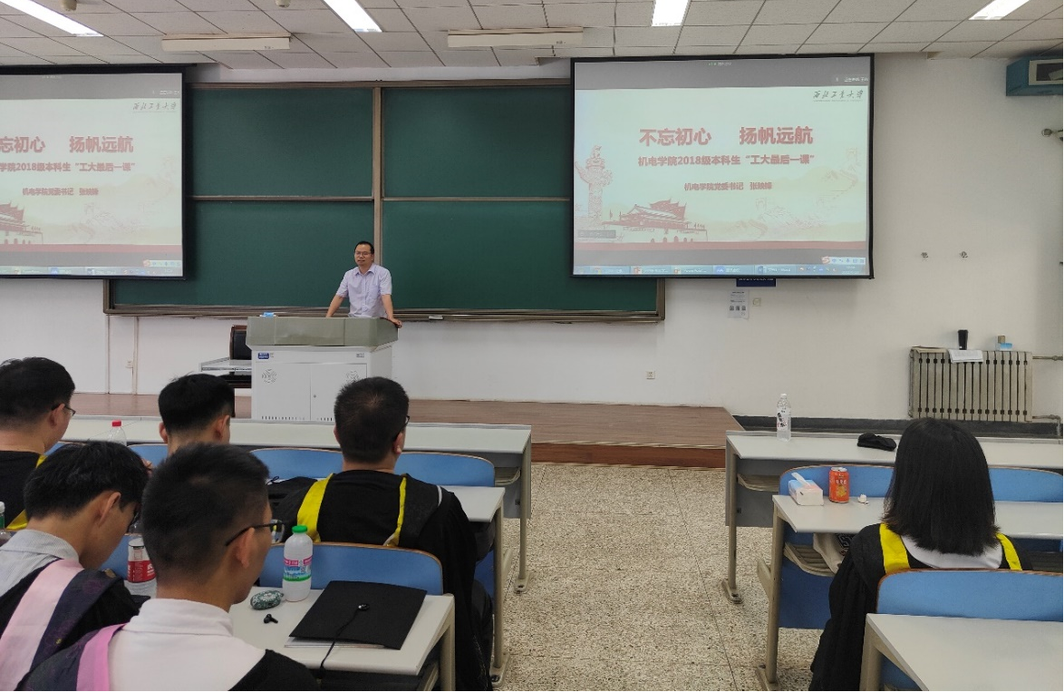 6月23日上午,新葡的京集团8814党委书记张映峰在新葡的京集团8814长安校区通过线下线上结合的模式为2022届本科毕业生讲授了“工大最后一课”。他以“不忘初心,扬帆起航”为主题,与同学们一起总结过往成就,回顾大学学习生活和成长发展点滴,展望美好前景,期待光明未来。