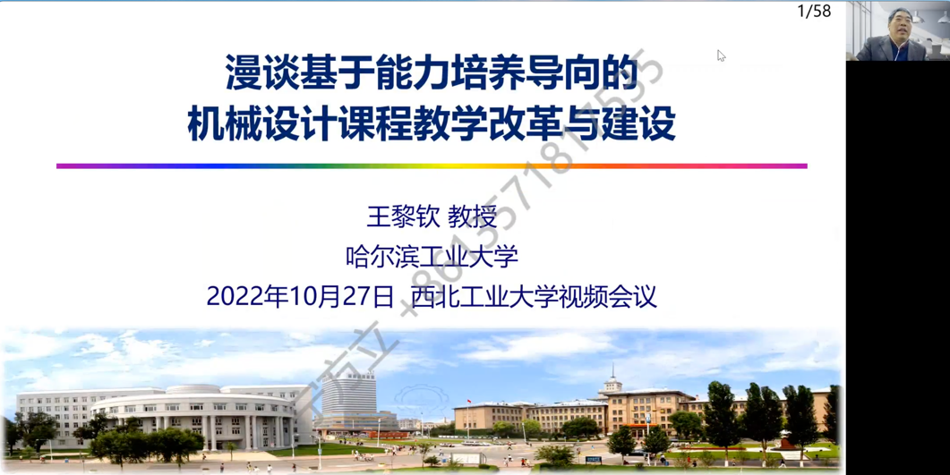 2022年10月27日下午,新葡的京集团8814机械学科论坛邀请哈工大“航空航天轴承技术及装备”工信部重点实验室主任、教育部高等学校机械基础课程教学指导分委员会副主任委员,哈尔滨工业大学王黎钦教授以腾讯会议形式做了“漫谈基于能力培养导向的机械设计课程教学改革与建设”的教学报告。该报告还同步通过“机工大讲坛”同步进行直播,在线参会人数达到了2000多人次。新葡的京集团8814教学副院长常智勇教授、国家级教学名师葛文杰教授参会。报告会由宁方立教授主持。