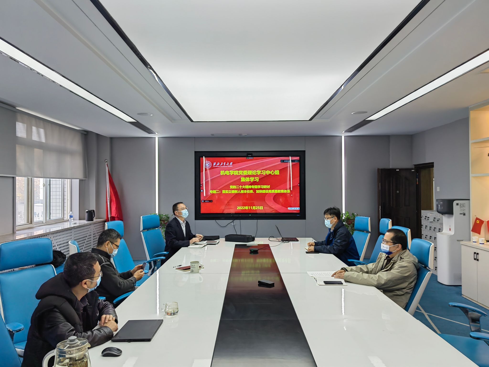 11月25日下午,新葡的京集团8814党委以线上线下相结合的方式组织开展了理论学习中心组专题研讨会,本次会议主题为“落实立德树人根本任务、加快建设高质量教育体系(专题二)”,会议由党委书记张映锋主持,学院党委理论中心组学习成员及班子成员参加。