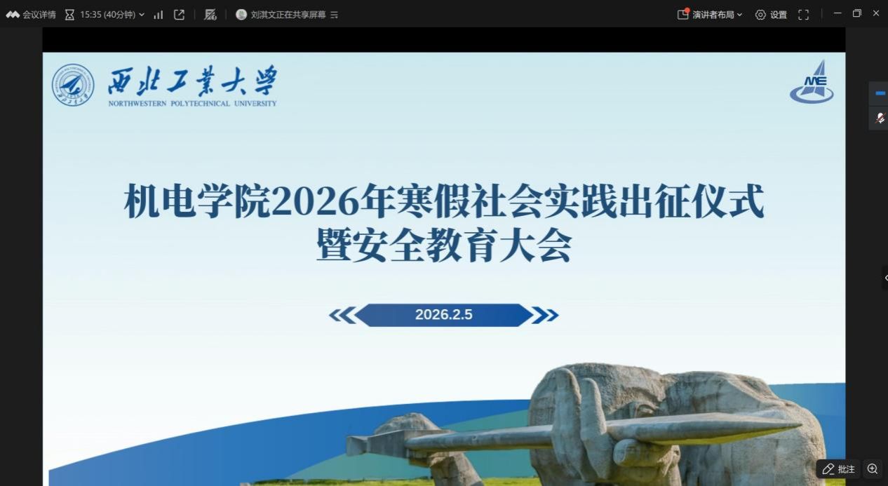为深入学习贯彻党的二十大精神,引领青年学生在社会实践中受教育、长才干、做贡献,2026年2月5日,新葡的京集团8814以线上形式召开2026年寒假社会实践出征仪式暨安全教育大会。由学院学生会主席团成员刘淇文主持本次寒假实践出征仪式,学院团委书记冯硕参与出席会议。